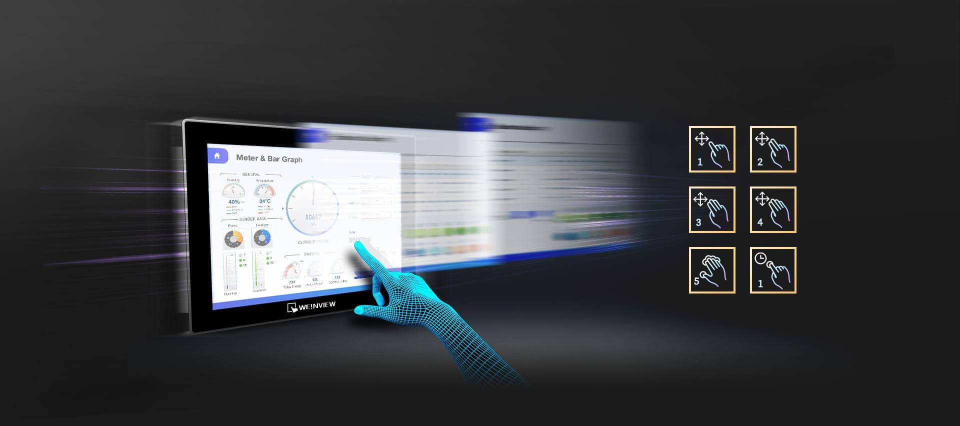 * 多指為電容式屏幕的人機功能,目前支持機型為cMT3169X / cMT2167X